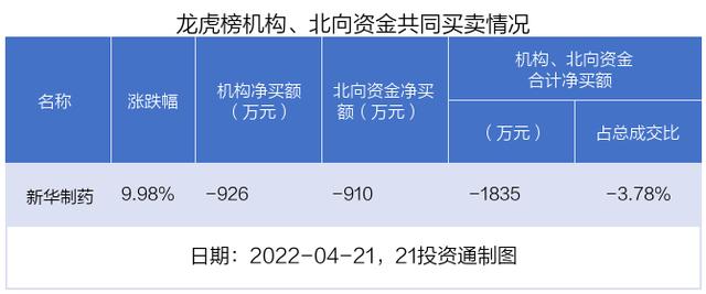 值得注意的是,机构和北向资金共同净卖出了新华制药。