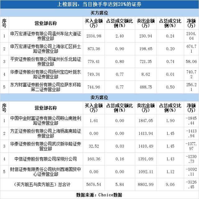 本文摘要:深交所2020年8月6日交易公开信息显示,丰乐种业因属于当日换手率达到20%的证券而登上龙虎榜。丰乐种业当日报收12.35元,涨跌幅为-4.11%,换手率20.22%,振幅5.90%,成交额9.72亿元。8月6日席位详情如下:榜单上出现了3… …