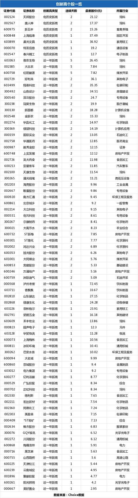 从全市场来看,4月23日沪深两市共有兴齐眼药、红阳能源、大北农等75只股票价格创近一年新高。其中兴齐眼药股价已连续八日创下近一年盘中最高价。