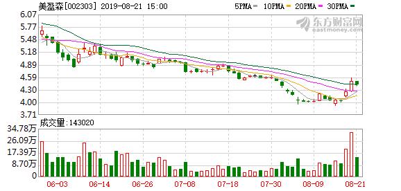 2019年10月15日,美盈森A股开盘4.92元,全日上涨3.62%,股价收报5.15元。自2019年10月11日以来,美盈森收盘价连续三日收于年线(250日均线)之上。