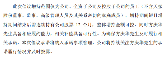 对于补偿的可行性,公司表示此次倡议整体增持金额可控,同时方庆华具备相应履约能力,相关补偿具备可行性。为确保方庆华及时履行相关承诺,本次倡议承诺将纳入承诺事项管理,公司将持续关注方庆华的承诺履行情况并及时披露。