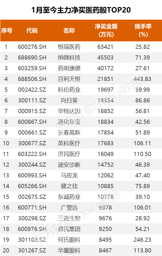 今年以来主力资金与北向资金分别抄底了一批医药股,来看看哪些个股受大资金青睐。