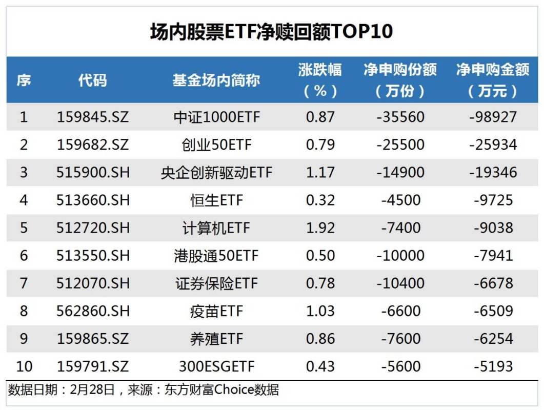 中证1000ETF遭赎回