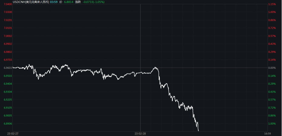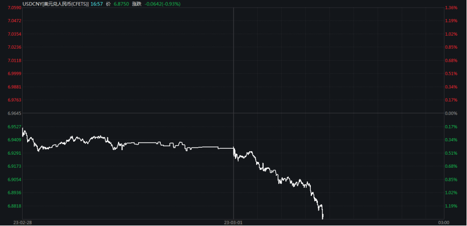 此外,人民币也大涨。截至发稿,在岸人民币兑美元汇率报6.8750,大涨近1%,日内拉升超600点;离岸人民币兑美元汇率报6.8814,大涨超1%,日内拉升超700点。