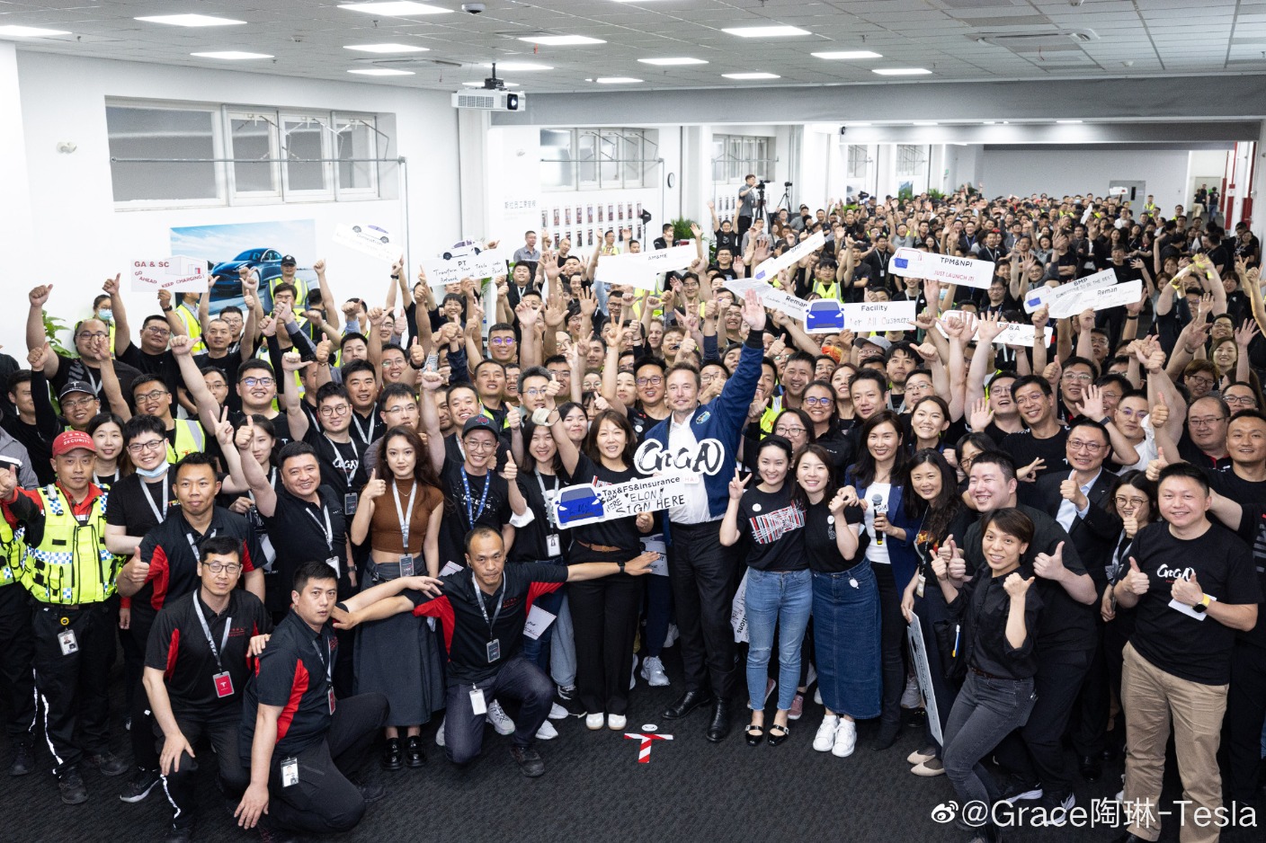 北京时间5月31日21时26分,特斯拉CEO马斯克的私人飞机落地上海虹桥机场,3小时后的6月1日凌晨0时28分,特斯拉全球副总裁陶琳微博发布两张马斯克和员工的大合影,配文“感谢所有的支持! 收获满满的一天! ”,地点是特斯拉上海超级工厂。