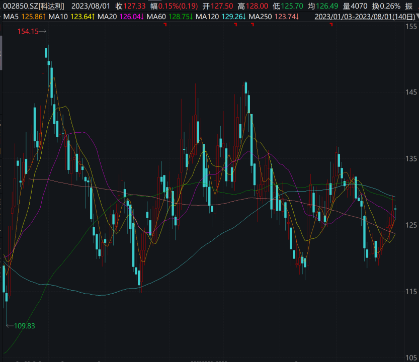 该股在今年1月一度涨至154.15元/股的位置,但今年整体股价走势犹如坐上过山车,震荡非常厉害,截至7月31日收盘,科达利报收127.14元/股,较定增发行价104.85元/股上涨了21%。