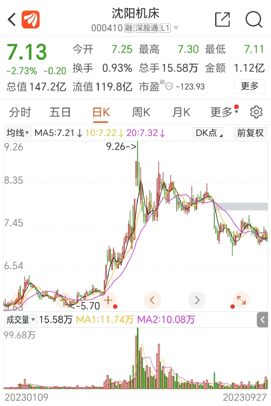 目前,沈阳机床股价为7.13元,市值147亿。