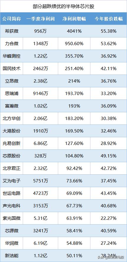 从业绩增幅来看,有11只半导体芯片股的一季度净利润增幅超过100%;