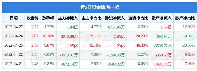 近5日资金流向一览见下表: