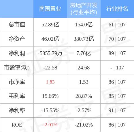 南国置业主要指标及行业内排名如下: