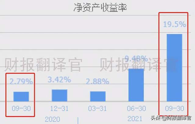 在2021年第三季度,该公司的净资产收益率大幅增长了6倍,这说明该企业的盈利能力发生了质的变化。