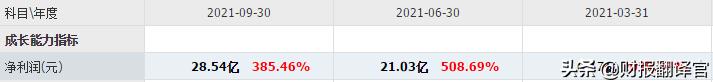 2021年第三季度,公司的净利润为28.54亿元,同比增长了385%。