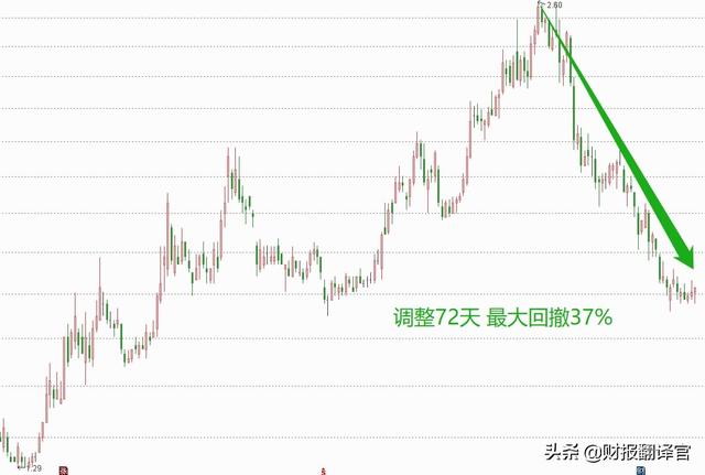 而该企业的股票却在72天里回调了37%,公司股票的价格也只有1元多。