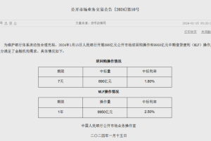 1月15日,中国人民银行发布消息称,为维…