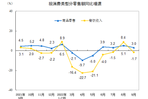 国家统计局:2022年9月份社会消费品零售总额增长2.5%