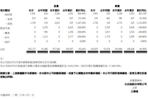 比亚迪:2月新能源汽车销量19.37万辆 上年同期8.8万辆