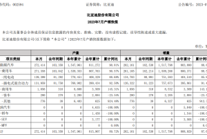 比亚迪:7月新能源汽车销量26.2万辆 上年同期16.2万辆