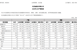 比亚迪:2023年新能源汽车销量302.44万辆 同比增长62.3%